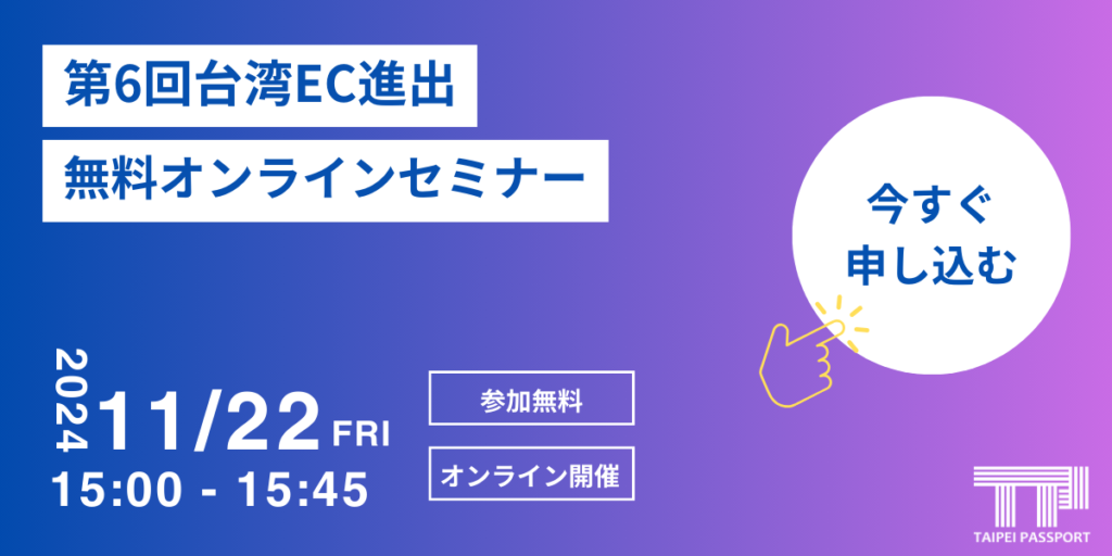 11/22(金)第6回 台湾進出ECの無料オンラインセミナー開催のご連絡