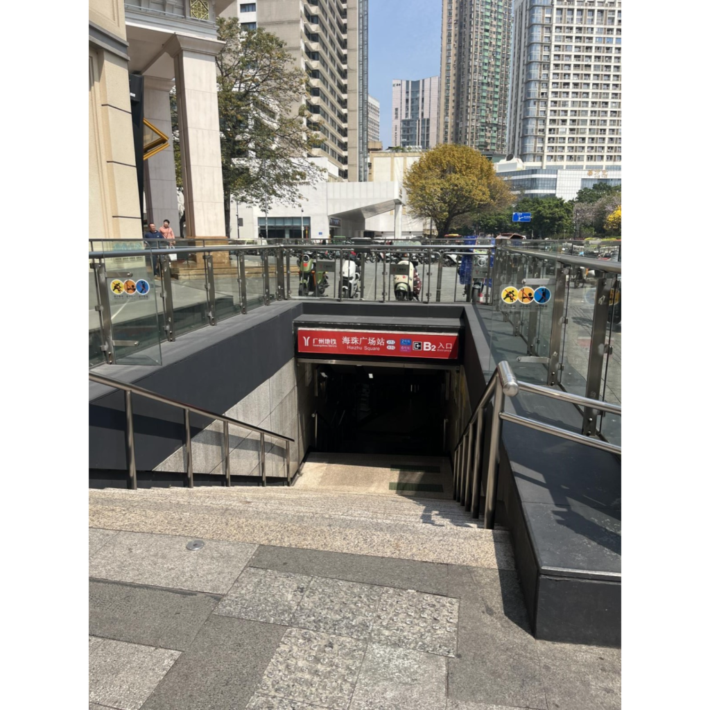 「万菱広場」は一徳路エリアの好立地に位置し、地下鉄2号線と6号線の「海珠広場」駅に隣接しており、近隣には広州や香港からの空港直通のシャトルバスの乗降スポットになっているホテルもあり、高速鉄道が発着する広州駅や幹線道路などの主要な交通インフラも利用でき、交通の便が非常に良いです。