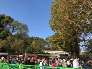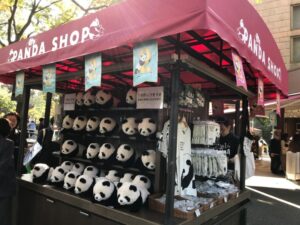 天気がいいから、公園で人がたくさんあります。パンダは一番人気が、多くの人が