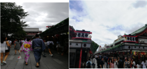 私たちが予約したホテルは蔵前でしたので、東京に着いた次の日、ホテルに一番近い浅草に行きました。浅草で、人気が高いのは雷門、仲見世通り、浅草寺です。外国人観光客だけではなく、美しい浴衣を着た日本人観光客も多かったです。すごくにぎやかでした。