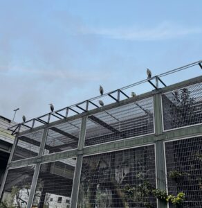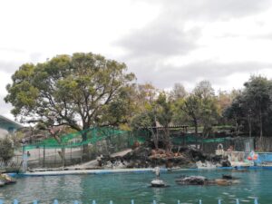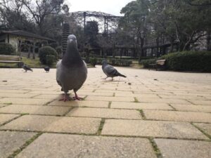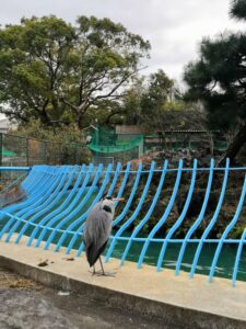 1日目は天王寺駅近くの動物園に行って見ました。一番印象的なのは、外にいる野生の鳥たちです。アオサギは屋上に立っていて、じっとして全然動かないので、その一瞬「これは本物の鳥ではないでしょ」と思いました。