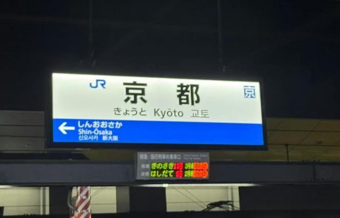 関西国際空港からJR線に乗り、京都駅に到着しました。