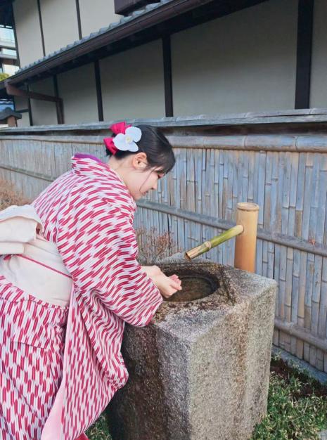 午後は清水寺へ行って、夫と一緒に着物を体験しました。
