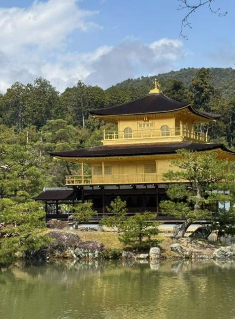 金色に輝く建物が湖に映えて、まるで絵のようでした。庭園も美しくて、日本の伝統的な建築に感動しました。