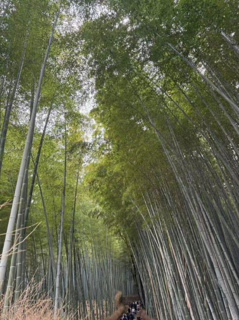 午後は嵐山の竹林小道へ行きました。風が吹くと竹が揺れて、さわやかな音がしました。